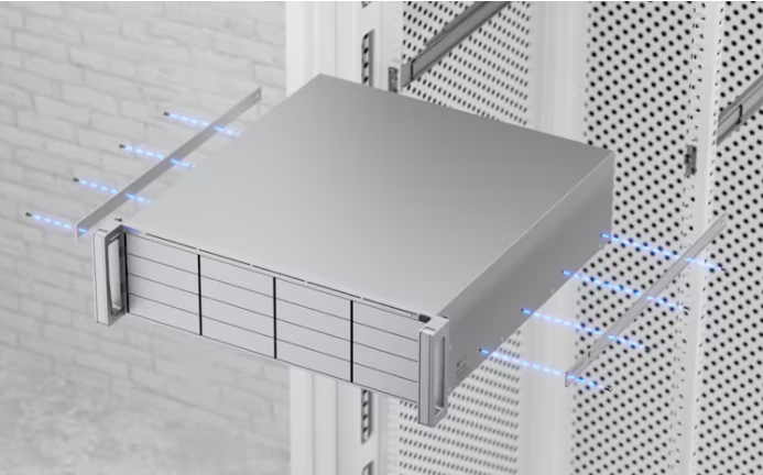 3U NVR with (16) 2.5/3.5” drive bays, supporting up to (70) 4K cameras or (210) Full HD cameras.