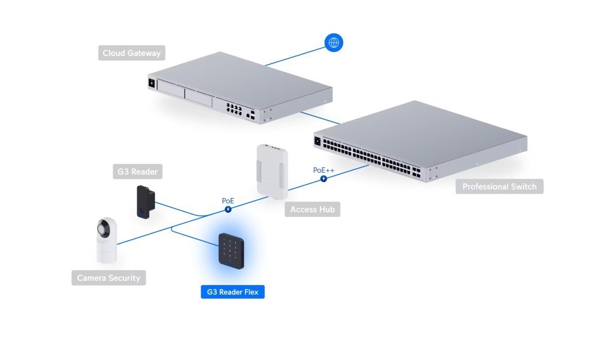 The UniFi UA-G3-Flex Access Controller is a compact, high-security door access device supporting multiple authentication methods, including NFC cards, keyfobs, PINs, and mobile unlock via Apple/Google Wallet. Designed for indoor and outdoor environments, it combines robust mechanical design with enterprise-grade security compliance.