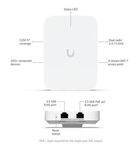 Coverage & Capacity: Up to 115 m² (1,250 ft²), 200+ clients