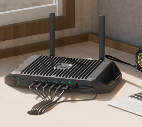 With a total PoE power budget of 350W, the system supports large-scale deployments of access points, cameras, and access control devices from a single centralized platform. Integrated SIM slots enable future Remote SIM integration with UniFi 5G Max Outdoor devices, providing additional connectivity options through upcoming software support.