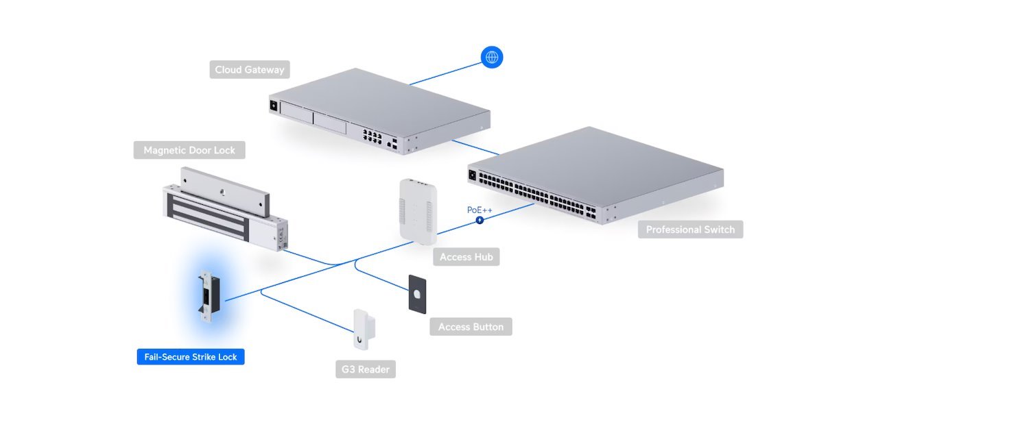This fail-secure electric strike lock is designed for integration with UniFi access control hubs, providing dependable entry control for professional security installations. Engineered to remain locked when power is removed, it supports secure perimeter protection across a variety of door deployments.