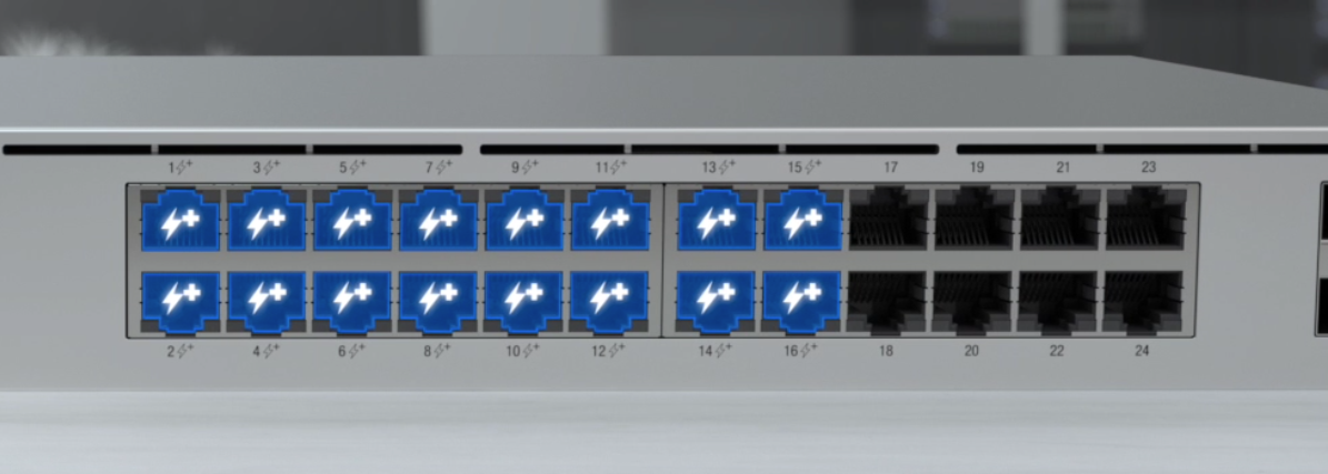 A 24-port, Layer 3 switch capable of high-power PoE++ output.